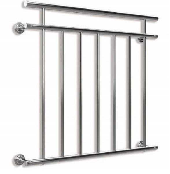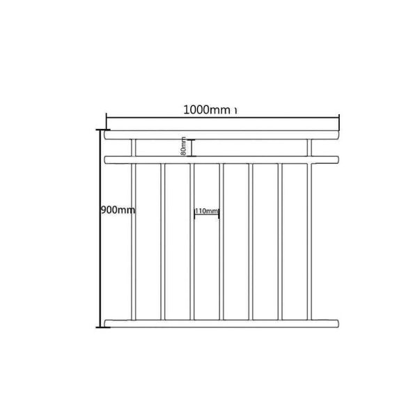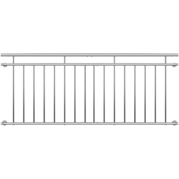 The handrail and pipe ends are closed, and the number of filler bars varies depending on the size. The bars have a distance of 11 cm to each other.